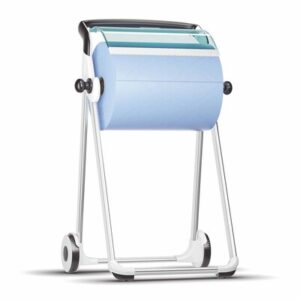 Stativet/dispenseren er velegnet til placering ved arbejdsborde, maskiner og rengøringsstationer, hvor der ofte er behov for hurtig adgang til aftørringspapir.