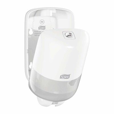 Vi præsenterer vores Tork sæbedispenser Sæbedispenser Tork S2 Hvid Mini plast til 475ml, designet til professionel håndhygiejne i toiletter og vaskeområder.