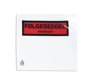 Med følgeseddellommer sikrer du, at fragtdokumenterne ikke bliver overset ved levering af dine varer. Desuden beskytter de mod støv og regn under forsendelsen og den selvklæbende funktionalitet, gør lommen praktisk og nem at anvende i pakkeprocessen.